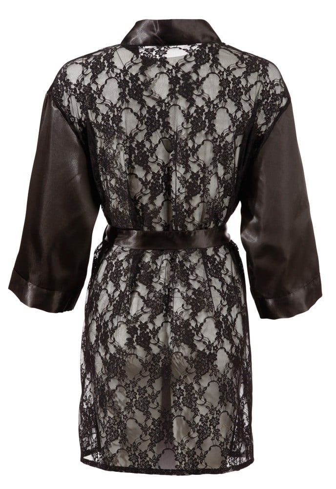 Cottelli – Szatén-csipke, rövid kimonó (fekete) L/XL